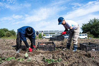 くじら雲では、利用者さんの地域とのつながりをとても大切にしています。 具体的には、近隣の農家さんと連携し、利用者さんが農作業のお手伝いに行くことで農家さんや消費者との つながりを生み出す事業や、北本の伝統産業であった菊の栽培を地域の方から教えていただき、 栽培した菊をレンタルとして貸し出す事業などに取り組んできました。